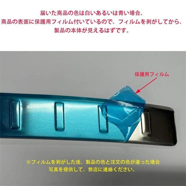 取り付け時は商品と取り付ける本体の接着面のほこりや油分を拭き取り、商品裏面の両面テープを剥がさず、一旦フィッテング確認してください。
