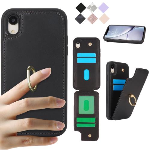 Cavor iPhoneXR 手帳型ケースiPhoneXR ケース背面ポケット付きiPhone10R ケースカードポケット上下開iPhone10Rスマホケース iPhoneXR 携帯ケースRFID機能iPhoneXR 財布型ケースiPhoneXR case 360°回転リング 可愛い横置 免許証と カード収納 Qi急速充電対応 落下防止-ブラック