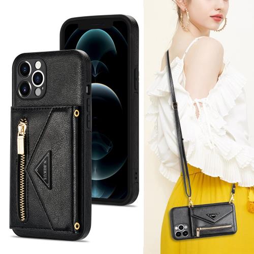 Cavor iPhone 12 Proスマホ ケース肩掛け 首かけ 斜めがけショルダー iPhone12 Pro財布型スマホ 携帯用ケース iPhone12 Pro手帳型 ケース いphone12 Proカード収納 ケース封筒のデザインiPhone12 Pro適用 case ステント機能タイプ二つ折り財布 磁気閉鎖可愛いストラップつきQi急速充電対応 軽ブラック