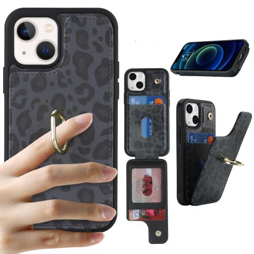 Cavor iPhone13 mini手帳型ケース背面ポケット付き iPhone13 mini スマホケースカードポケット上下開iPhone13 mini 携帯ケースRFID機能軽量 薄型 iPhone13 mini 財布型 ケース iPhone13 mini case 360°回転リングカード2枚収納 可愛い横置 免許証と Qi急速充電対応-黒ヒョウ柄