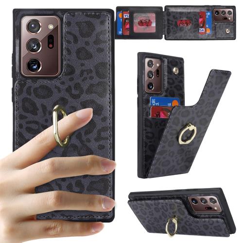 Cavor Galaxy Note20 Ultra 5G SC-53A SCG06 ケース背面ポケット付きGalaxy Note20 Ultra手帳型ケース カードケースカードポケット 上下開 RFID機能 Galaxy Note20 Ultra 財布型ケース Galaxy Note20 Ultra スマホケースcase 360°回転リング免許証と 横置Qi急速充電対応-黒ヒョウ柄