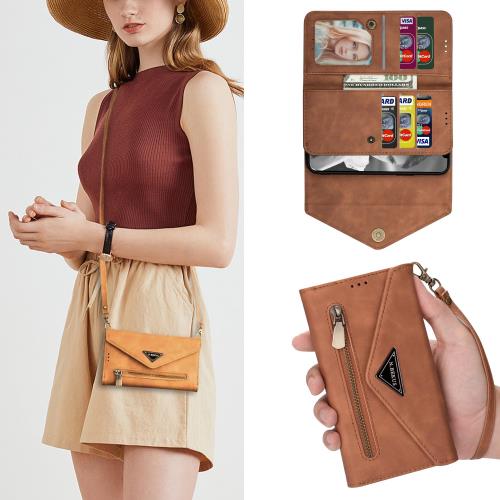 Cavor iPhone 14 6.1 対応スマホケース肩掛け首かけ 斜めがけ ショルダー アイフォン14 スマホ携帯用ケース iPhone14 手帳型ケース封筒のデザインiPhone14 携帯ケース多財布デザインiPhone14 case クロスボディケースカード磁気ボタン機能 ICカードホルダーカード収納 二つ折り財布ライトブラウン