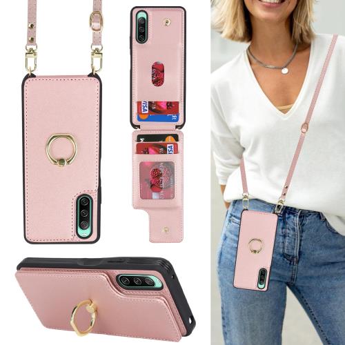 Cavor Xperia 10 iv docomo SO-52C au SOG07 softbank A202SO UQmobileケース 手帳型 Xperia 10 iv スマホ 携帯用 ケース ショルダー クロスボディ肩掛け 首かけ 斜めがけ ショルダー ポケット付き上下開Xperia 10 iv手帳型ケースRFID機能Xperia 10 iv財布case 360°回転リング-ピンク