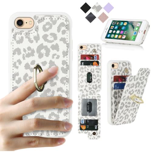 Cavor iPhoneSE 2世代(2020)/iPhoneSE 3世代(2022)/iPhone7/8ケース背面ポケット付きiPhonese2 手帳型ケースiPhone7 手帳型ケース カードポケット上下開iPhoneSE2スマホケースRFID機能iPhoneSE3 財布型ケースiPhone8 case 360°回転リング Qi急速充電対応 免許証と-白ヒョウ柄