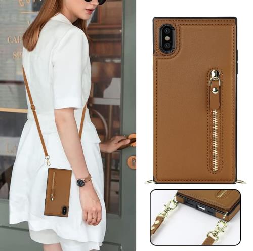 Cavor iPhoneXR スマホケース 肩掛け首かけ斜めがけスマホショルダーiPhoneXR ケース手帳型iPhone10RスマホカバーRFID機能iPhoneXR ケースカード収納マグネットダブルデザインiPhoneXRスマホ携帯ケース横置 付きの専属ストラップ同梱なので ファスナースタイル Qi急速充電 財布磁気機能- ブラウン