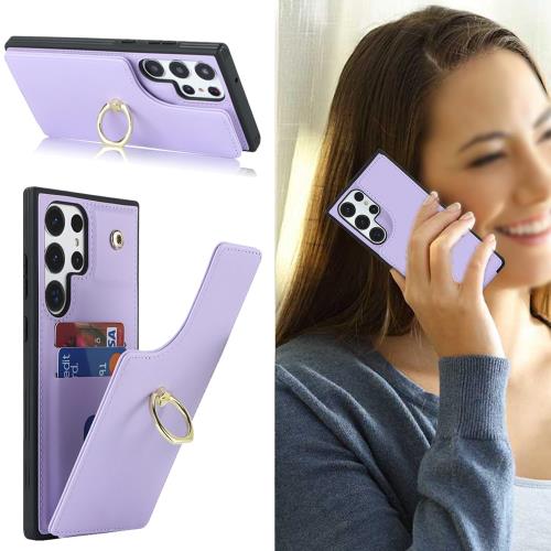Cavor Galaxy S23 Ultra 5G SC-52D SCG20 ケース背面ポケット付き Galaxy S23 Ultra 5G手帳型ケースSCG20 ケースカードポケット上下開SC-52D 携帯ケースRFID機能Galaxy S23 Ultra 財布型ケース Galaxy S23 Ultra case 360°回転リング横置 免許証とQi急速充電対応-パープル