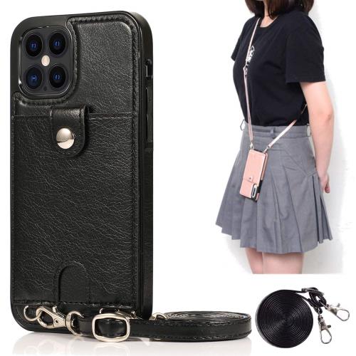 iPhone 12 Pro/iPhone12 6.1 (2020)スマホ ケース 肩掛け 首かけ 斜めがけ ショルダー iPhone 12 Pro 縄掛け ケース PU レザー iPhone 12 6.1 カード収納 iPhone 12 Pro 手帳型 カバー iPhone 12 Pro カバー iPhone 12 6.1 背面 手帳型 高級PUレザー iPhone 12 Pro 財布型 Cavor 携帯ストラップ付き Qi充電対応 背面ポケット付き 調整可能 紛失 落下防止 滑り止め 多機能 落下保護首かけ 斜めがけ-ブラック