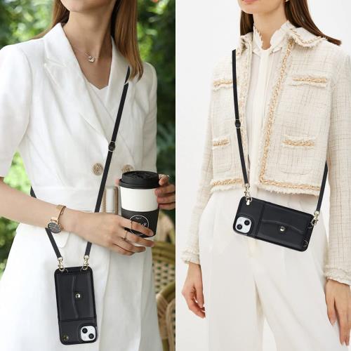 Cavor iPhone16 スマホ ケース 手帳型 iPhone16 ショルダー ケース 肩掛け 首かけ 斜めがけ ショルダー ケース iPhone16手帳型 ケース アイホン16 ケースカード収納RFID機能財布ケースCASE肩掛け手掛けiPhone16 財布型walletカバー 携帯のケース可愛 磁気機能クロスボディケース 横置-ブラック