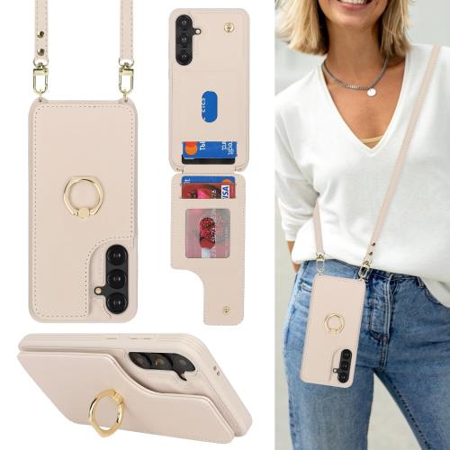 Cavor Galaxy S24 Plus 手帳型ケースGalaxy S24 Plus スマホケースショルダークロスボディ肩掛け 首かけ 斜めがけ背面ポケット付きGalaxy S24 Plus 財布型ケース上下開Galaxy S24 Plus携帯ケースショルダーRFID機能Galaxy S24 Plusケースカード収納360°回転リング 横置磁気機能Qi急速充電対応-ホワイト