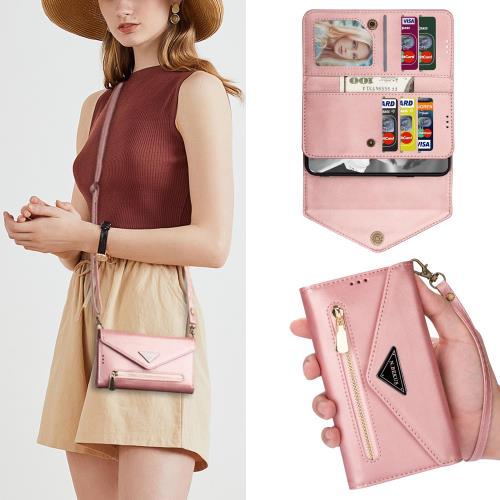 Cavor iPhone 13 mini対応スマホケース肩掛け首かけ 斜めがけショルダー アイフォン13 miniスマホ携帯用ケース iPhone13 mini手帳型ケース封筒のデザインiPhone13 mini携帯ケース多財布デザインIP13 5.4 caseクロスボディケースカード磁気ボタン機能 ICカードホルダーカード収納 二つ折り財布ピンク