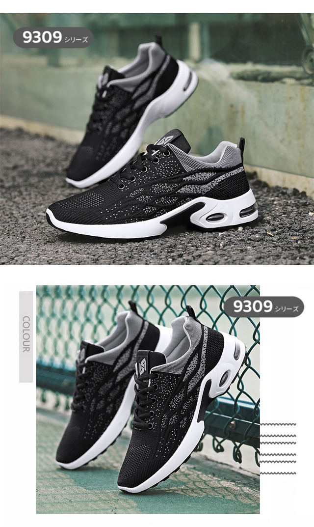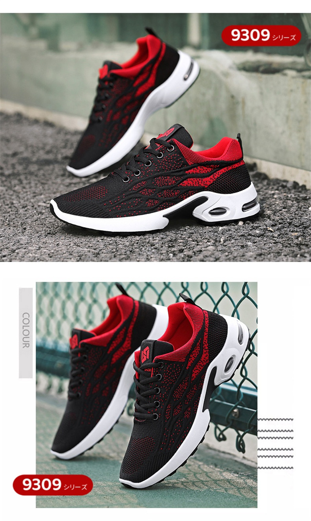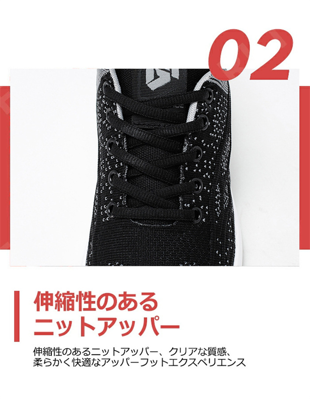 【耐久性・滑りにくい】耐摩耗性と防滑兼備のアウトソールが使用されるため、ランニング、ジョギング、ウォーキングなどあらゆる場面にお使い頂ける万能靴です。 【超軽量・通気性】アッパーには軽量でサポート性に優れたフライニットを配置し,通気メッシュと吸汗生地のライナーが採用され、通気性と速乾性が優れて。 【衝撃緩衝】エアクッションとPUのアウトソールで、震えに強く、着地時の衝撃をほとんど吸収し、足、膝、腰への負担を和らげます。柔軟なインソールで、長時間歩いても疲れにくい。 |