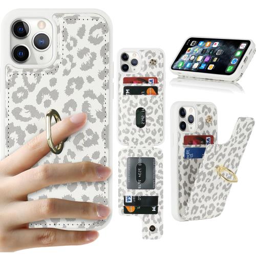 Cavor iPhone11 Pro Max手帳型ケース 背面ポケット付き カードポケット上下開iPhone11 Pro Max携帯ケースRFID機能軽量 薄型 落下防止iPhone11 Pro Max財布型ケース iPhone11 Pro Maxcase 360°回転リング 可愛い 横置 Qi急速充電対応 免許証と-白ヒョウ柄