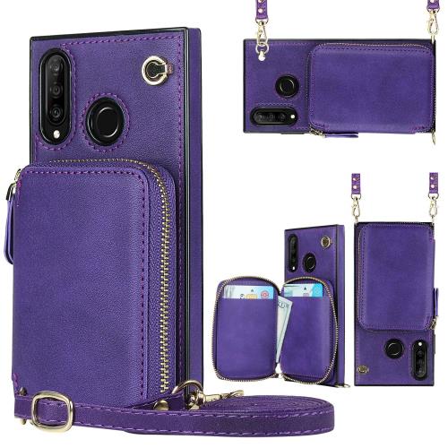 Huawei P30 Lite/nova 4e/HWV33/P30 lite Premium スマホ ケース 肩掛け 首かけ 斜めがけ ショルダー ケース 縄掛け Huawei P30 Lite 手帳型 ケース Huawei P30 lite Premium ケース 手帳型 Huawei P30 Lite PUカバーRFID機能財布 ケース 上質PUレザー多財布デザインHuawei P30 lite Premium/nova 4e 用き耐衝撃性RFID機能財布合一 付きの専属ストラップ同梱なので 強磁性 ファスナースタイル Huawei P30 Lite 財布型 カバー おしゃれ 耐汚れ カード収納 磁気閉鎖 内蔵マグネット 衝撃吸収 取り外し可能 ICカードホルダー レンズ保護 - パープル