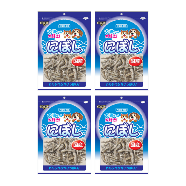 カルシウム豊富!国産にぼしで、健康なおやつタイム。国産の煮干しを無添加・無着色でおやつにしました。カルシウムたっぷりで歯と骨を丈夫にします。わんちゃん・猫ちゃんどちらにも与えることができます。主食に混ぜて与えるか、又おやつとして最適です。