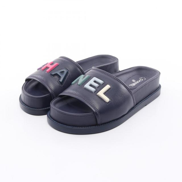 シャネル CHANEL サンダル 靴 レザー レディース ネイビー系 / マルチカラー G38933 【中古】
