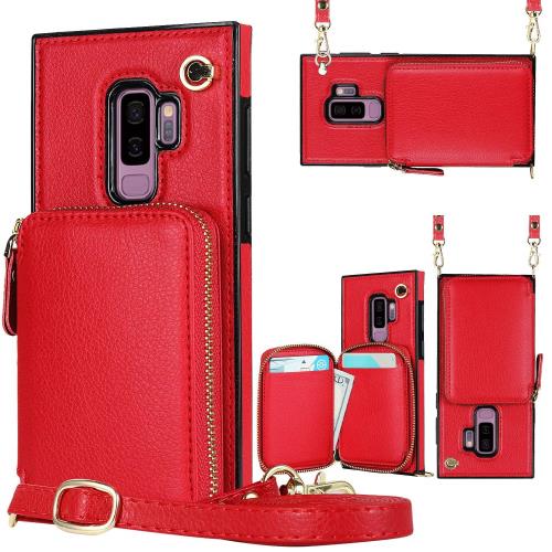 サムスン ギャラクシー S9 plus ケース 手帳型 Galaxy S9 plus 携帯カバー Galaxy SC-03K スマホケース Galaxy S9 plus 手帳型ケース SCV39 背面財布型カバー Jaorty 上質PUレザー お札入れ スタンド機能付き ショルダーストラップ付きケースRFID機能財布合一 付きの専属ストラップ同梱なので-レッド
