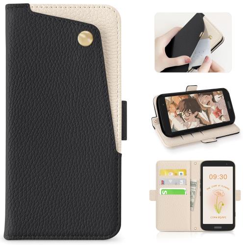 CASSYOOK らくらくスマートフォン f-53e ケース 手帳型 f53eケース手帳型 表面ポケット便利 らくらくフォン ケース f53e 全面保護 らくらくスマートフォンf-53e ケース カード収納 横置きスタンド機能 高級PUレザー おしゃれ 上質な手触り 擦り傷防止(ブラック)