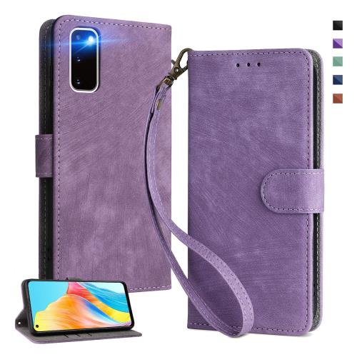 UnivoColors Galaxy S20/S20 5G (SC-51A/SCG01) 手帳型 スマホケース 携帯カバー 高級合皮 RFIDブロッキング カード収納 専属ストラップ同梱 マグネット開閉 横置きスタンド機能 放熱性 着脱しやすい 全面保護 カメラ保護 衝撃吸収 落ち着いた色(ムラサキ)