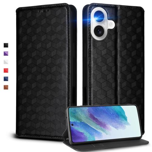 UnivoColors iPhone 16 Plus 対応手帳型ケース 高級合皮 カード収納 マグネット開閉 スタンド機能 ストラップホール付き TPUソフトバンパー 全面保護 カメラ保護 衝撃吸収 ビジネス おしゃれ カバー(ブラック)