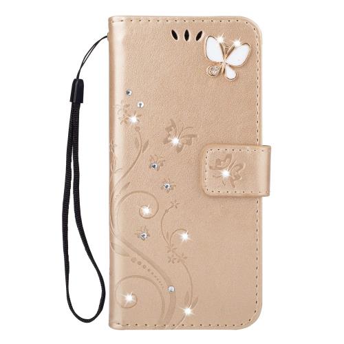 Galaxy S22 Ultra 5G ケース 6.8 インチ専用 SC-52C 手帳型 カバー おしゃれ 純色 バタフライの印 PUレザー 上絵 手帳型 カード入れ SCG14 財布カバー スタンド機能 耐衝撃 防塵 耐久性 装着やすい 吸着の機能 キラキラ 胡蝶 ラインストーン デコ メチャ可愛い ギャラクシー S22 ウルトラスマホカバー (Galaxy S22 Ultra, ゴールド)