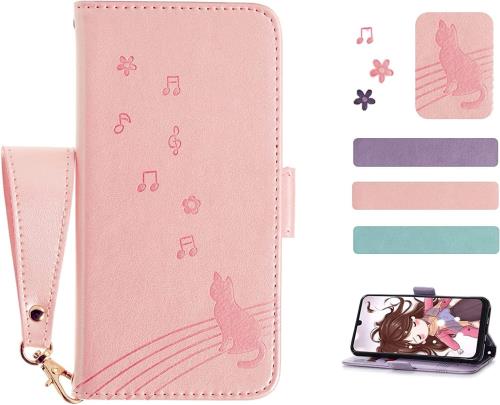 arrows We2 F-52Eケース 手帳型 FCG02 ケース arrows We2 F-52E スマホケース アローズWE2 F-52Eケース MUOUID おしゃれ かわいい 猫 人気 財布型 サイドマグネット カード収納 横置き機能 携帯カバー (arrows We2 F-52E,ローズゴールド)