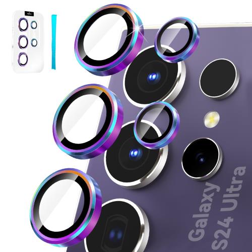 CloudValley [3+2] Samsung Galaxy S24 Ultra 用 カメラ レンズ保護フィルム アルミ合金 9H硬度 傷防止 カメラフィルム HD強化ガラス 夜間撮影モード バックカメラカバー 防塵 耐衝撃 簡単貼付 S24U 6.8 2024対応 - カラフル