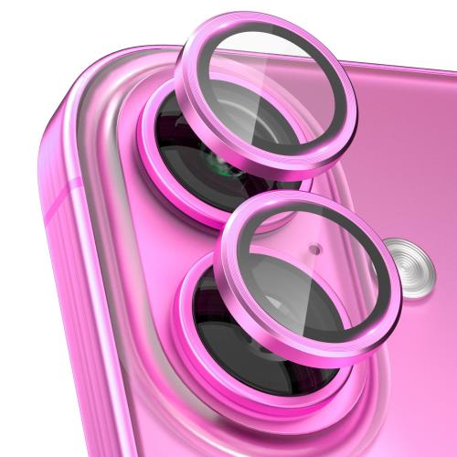 CloudValley カメラフィルム iPhone 16 /iPhone 16 Plus用 カメラ レンズ保護カバー ウルトラHD強化ガラスカメラカバー [ケースフレンドリー] メタル個別レンズスクリーン保護リング,ピンク