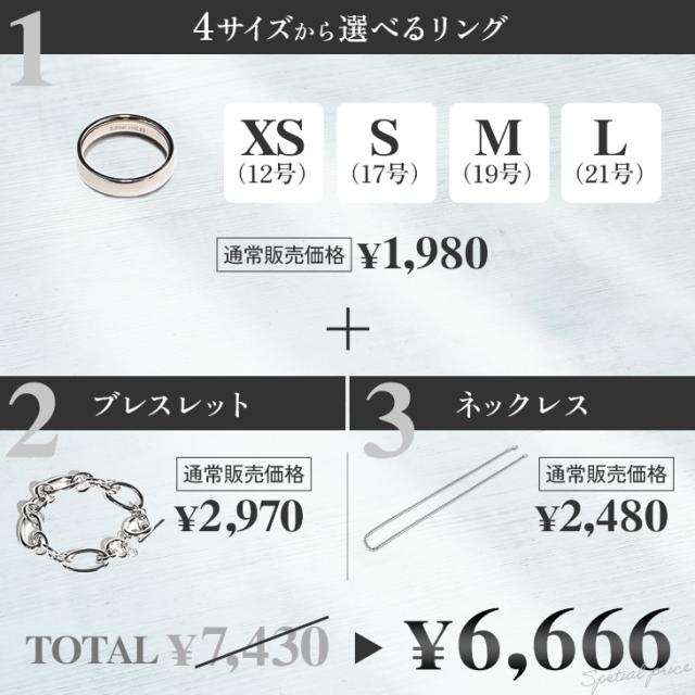 リングを4つのサイズから選べる「ネックレス」と「ブレスレット」そして「リング」のアクセサリー3点セット。