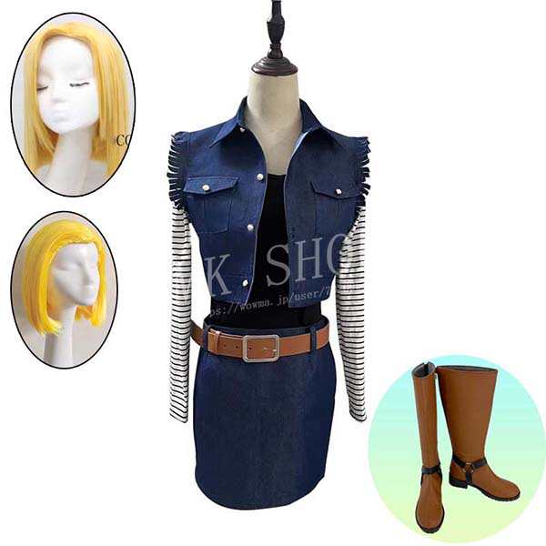 送料無料 ドラゴンボール 風 人造人間18号 コスプレ 衣装 ウィッグ cos靴 男女兼用 コスチューム cosplay イベント 演出服 アニメ変装 仮装 ハロウィン