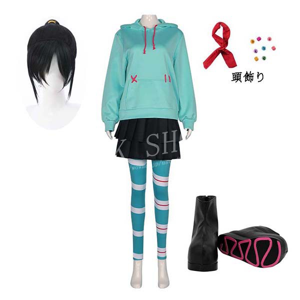 送料無料 子供用 大人用 シュガー ラッシュ 主人公 ヴァネロペ コスプレ衣装 ウィッグ 靴 cosplay 仮装 イベント クリスマス ハロウィン ステージ 文化祭 学園祭