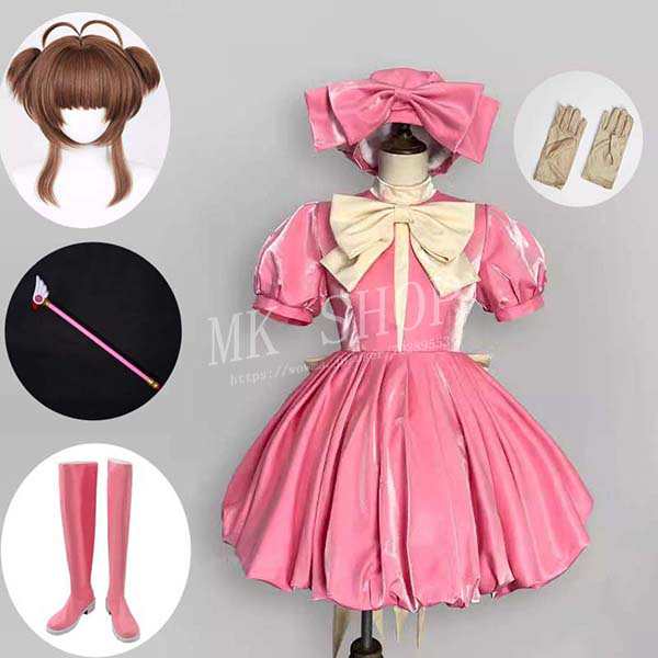 送料無料 カードキャプターさくら 風 木之本 桜 コスプレ衣装 ウィッグ 靴 鳥頭杖 cosplay ハロウィン 演出服 変装