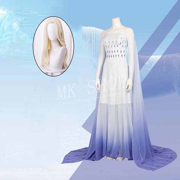 送料無料 アナと雪の女王 エルサ コスプレ 衣装 Elsa 姫様 ドレス 演出服 マント付き ワンピース レディー ス ウィッグ 大人サイズ エレガント 文化 祭 学園祭 ハロウェイン