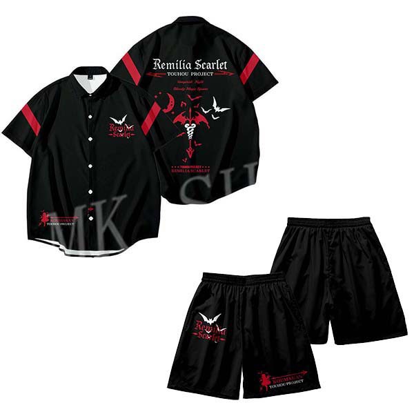 東方Project 風 レミリア フランドール 3Dデジタル シャツ着 半袖 ズボン ブラック2点セット テレビ ハロウィン パーティー男子 女子 大人用 演出服 仮装