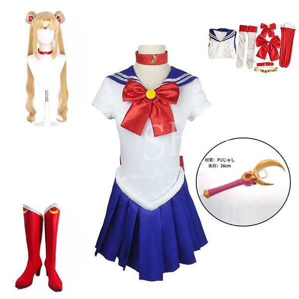 大人用 子供用 美少女戦士セーラームーン 風 セーラームーン コスプレ 衣装 ウィッグcos靴 道具魔法の棒 アニメ ゲーム ハロウィン cosplay 変装