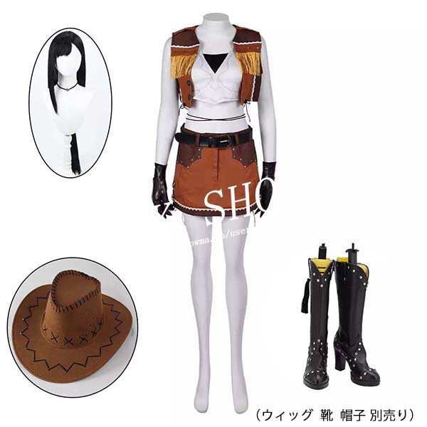 ファイナルファンタジー 風 ティファ・ロックハート コスプレ 衣装 カウボーイスーツ ウィッグ 靴 コスチューム 演出服 アニメ ゲーム ハロウィン cosplay 変装