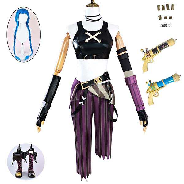 送料無料 Arcane アーケイン リーグ オブ レジェンド LOL Jinx ジンクス コスプレ 衣装 ウィッグ cos靴 槍 ハロウィン cosplay 変装 コスチューム 演出服 アニメ ゲーム