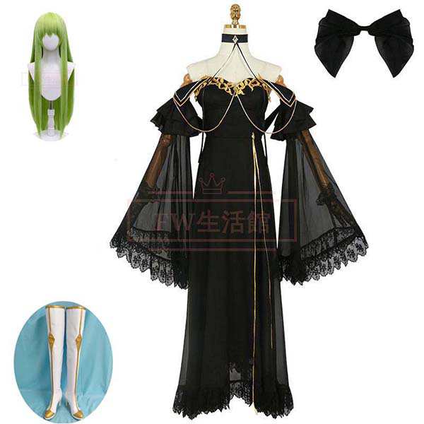 コードギアス 反逆のルルーシュ 風 C.C. シーツー ドレス コスプレ衣装 ウィッグ 靴 cosplay ハロウィン 演出服 変装