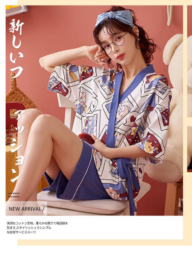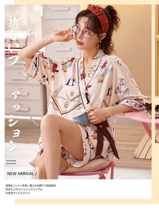 パジャマ 作務衣 レディース 甚平 上下セット ルームウェア 女性 大きいサイズ 春夏 寝間着 5分袖 ハーフパンツ ショートパンツ 前開き ナイトウエア 普段着 キャラクター 花火大会 可愛い