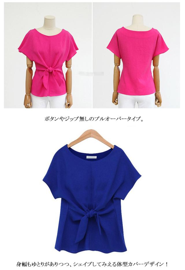 サラッと快適素材!ウエストリボン半袖ブラウス ブラウス レディース トップス プルオーバー リボン リボン シフォン 薄手 半袖 無地 大きサイズ 春夏 M L 2LL 3LL 4LL 5LL 6LL