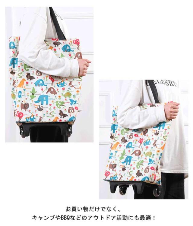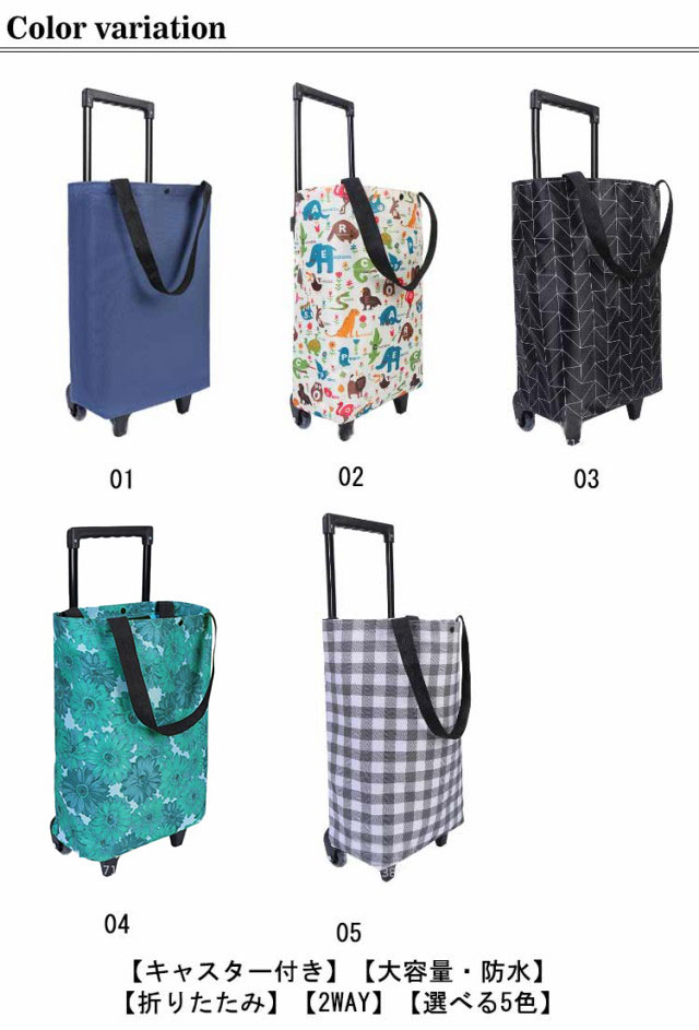 | 【キャスター付き】【大容量・防水】【折りたたみ】【2WAY】【選べる5色】 おしゃれな柄が目を引くカート。キャスター付きで持ち運びラクラク! 大容量でたくさんのお買い物もラクラク! キャスターはスムーズな動きを実現。ハンドルバーは伸縮可能。固定式で安定した使い心地。年寄りの方もご利用できます。 収納ハンドルとキャスター付きで、食材や飲み物が多くなってもラクラク移動できます。 使わない時にはたたんで薄くコンパクトに収納でき、持ち運びラクラク♪ トートバッグとしても、キャリーカートとしても使えます。 お買い物だけでなく、キャンプやBBQなどのアウトドア活動にも最適! | |