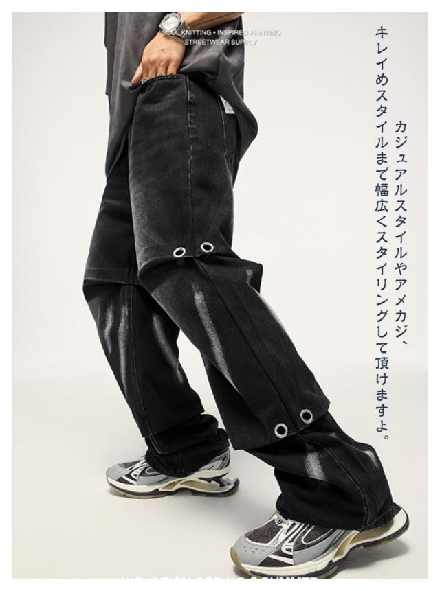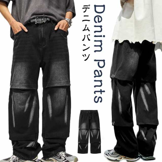 ウォッシュ加工 デニムパンツ デニム ワイドパンツ ロング パンツ ダメージ加工 ストレート ワイド デニムパンツ メンズ ジーンズ デニム ストレートパンツ ストレート ジーンズ ゆったり イージーパンツ リラックス パンツ ストリート系 ダンス衣装 春 秋 冬 送料無料