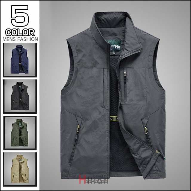 アウトドア用 ベスト メンズ ジレ 釣り スポーツ ジップアップ 薄手 キャンプ 登山 撥水 ライトアウター