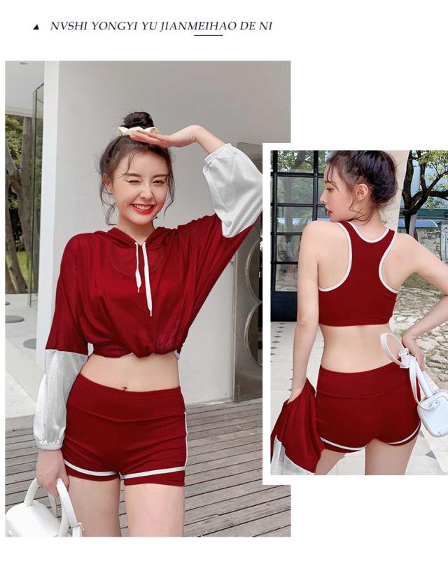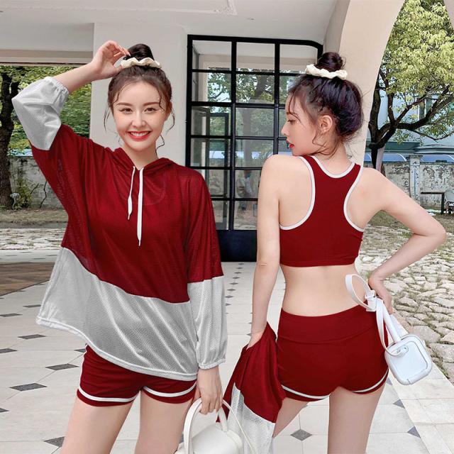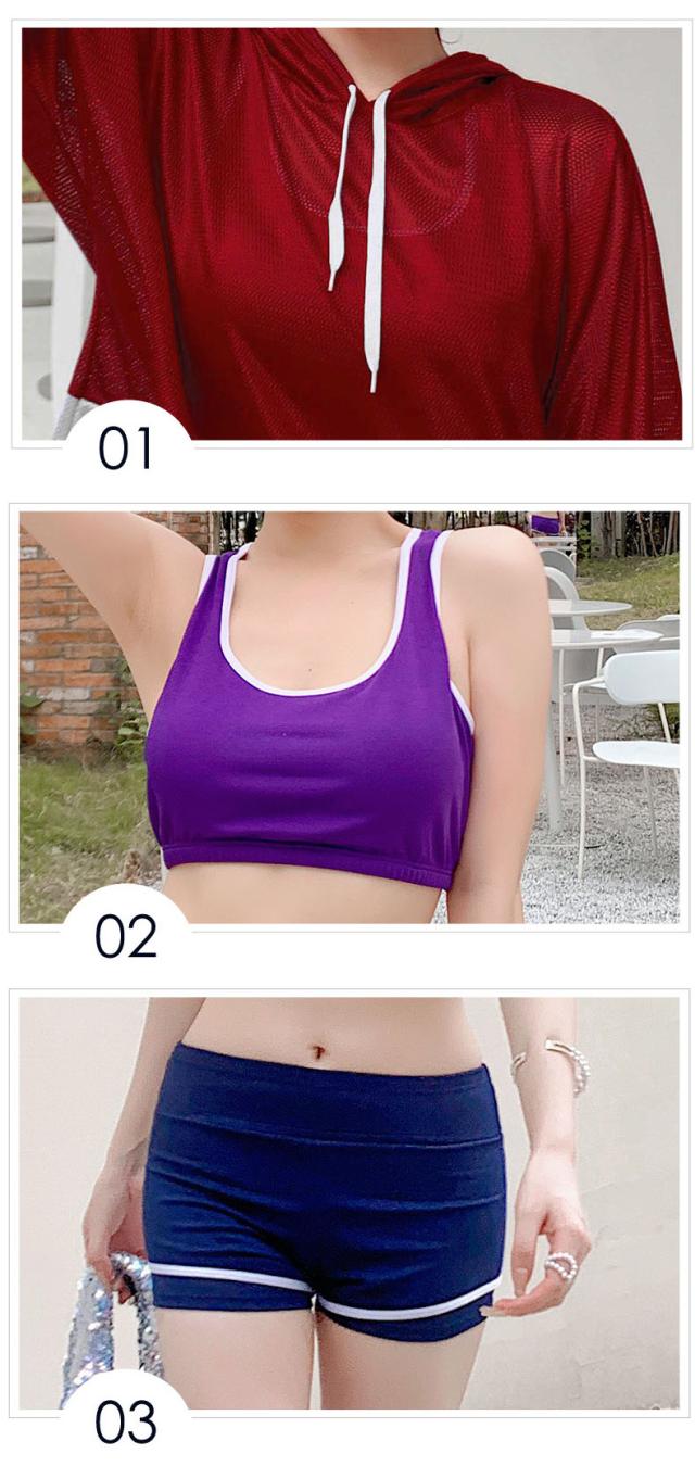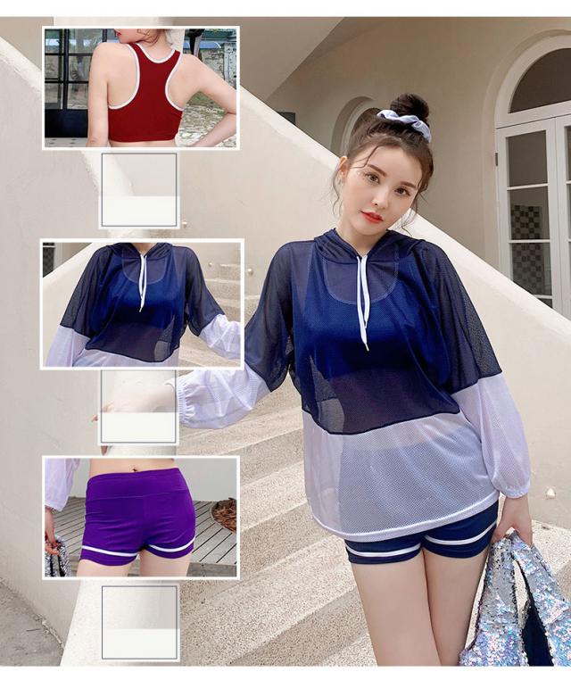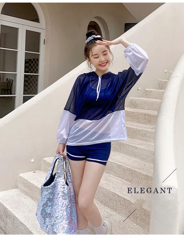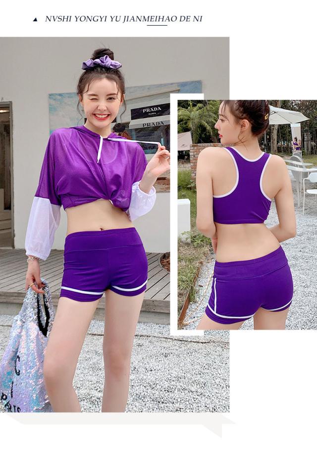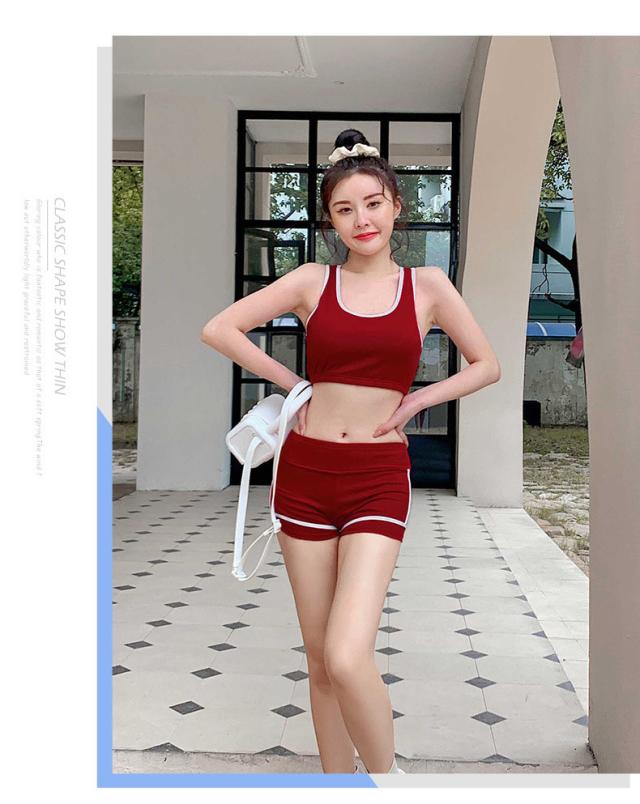 送料無料 水着 レディース 体型カバー 露出控え 中学生 高校生 大学生 韓国 水着セット フィットネス 水着 スポーティー 3点セット セパレート タンキニ タンク ショートパンツ