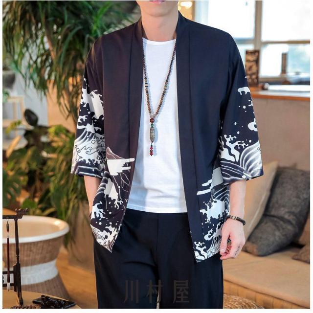 羽織 メンズ 夏服 男性用甚平 五分袖 和風 はおり カーディガン 浴衣風 七分袖 着物 父の日