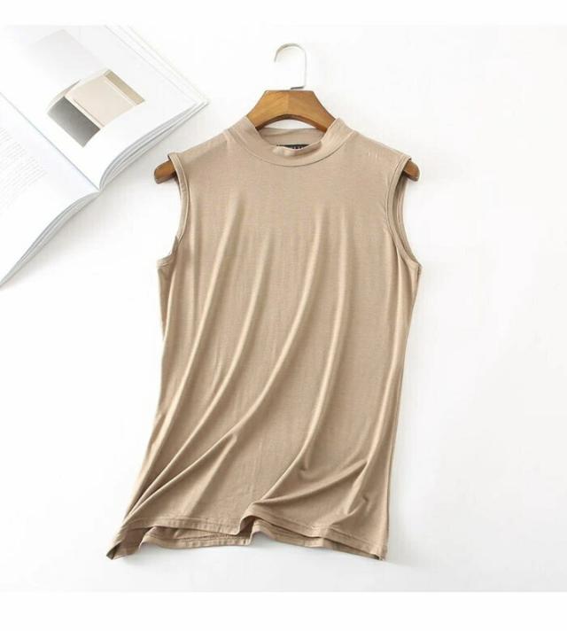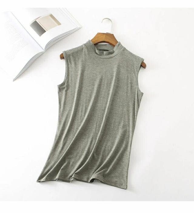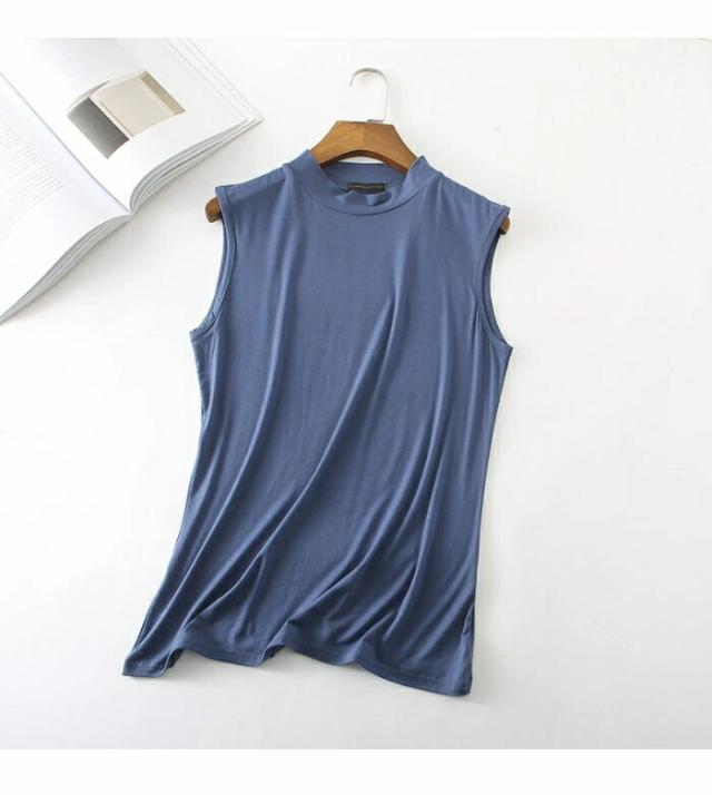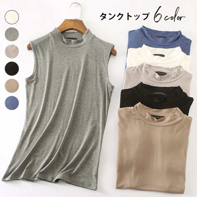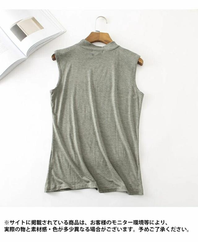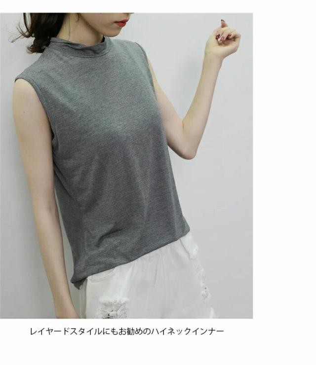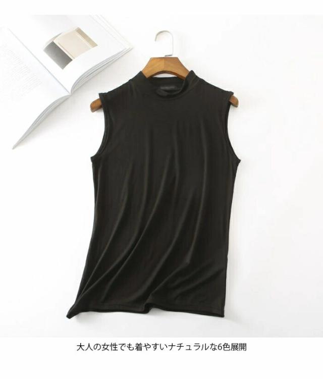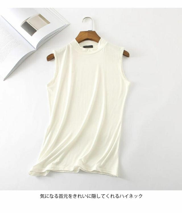 タンクトップ レディース ノースリーブ カットソー 薄手 無地 ハイネック インナー トップス プルオーバー お洒落 シンプル キレイめ フィット カジュアル レイヤード 夏新作