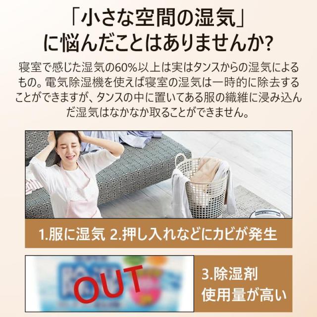 梅雨時期、湿気やカビに対策。狭いスペースでもフィットします。食品や薬に乾燥用、洋服ダンス、クローゼット、下駄箱、靴箱、車内用、和室その他いろいろな場所に適用。