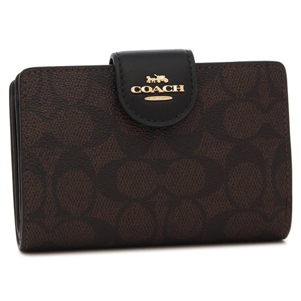 ●商品名:コーチ アウトレット 二つ折り財布 シグネチャー コーテッド キャンバス ミディアム コーナー ジップ ウォレット ブラウン ブラック レディース COACH CW786 IMXAQ ウォルナット ブラック