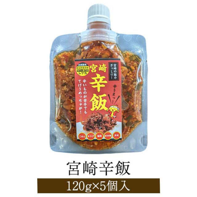 宮崎辛飯 120g × 5個入り 鶏肉 とり肉 地頭鶏 宮崎鶏 ご飯のお供 詰め合わせ おつまみ セット 国産 九州産 宮崎産 高級 ギフト プレゼント お祝 手土産 詰め合わせ 小分け 無添加 産地直送 送料無料 ウエルネス タビグルメ