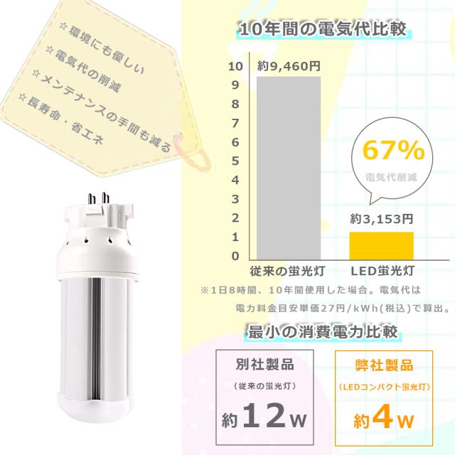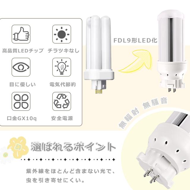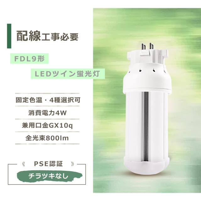 配線工事必要 FDL9 LED コンパクト蛍光灯 GX10q 口金 LED コンパクト蛍光灯 LED ツイン蛍光灯 コンパクト形蛍光灯 LED FDL9EX 互換 LED ツイン2 蛍光灯 代替 FDL9EX-L/W/N/D ツイン蛍光灯代替に最適 高輝度 防虫 消費電力4w 800lm 長寿命 50000時間 事務所照明向け 店舗照明