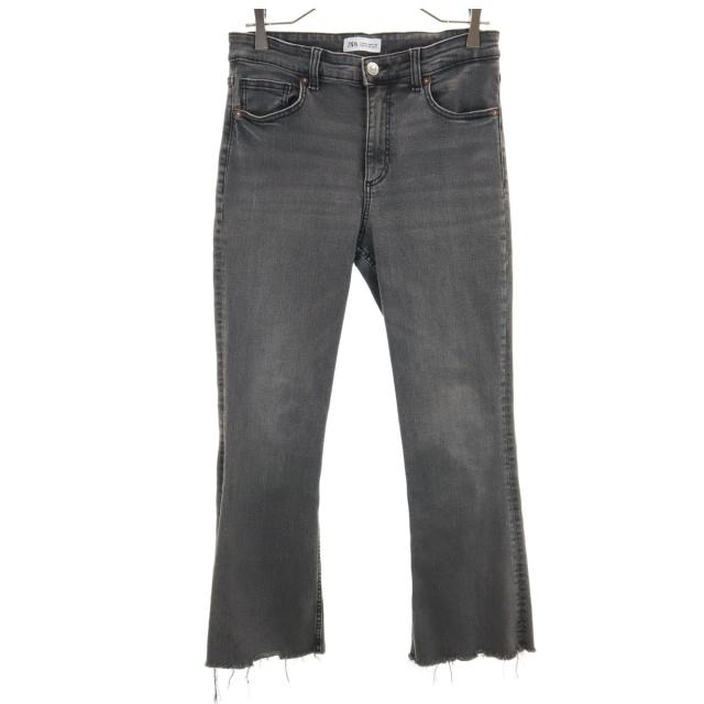 ザラ カットオフ加工 ブーツカットデニムパンツ 40 チャコール ZARA ジーンズ レディース